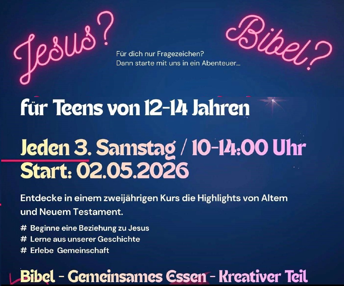 Altersgruppe 12-14 „Bibel entdecken“ Kurs für Teens um die Bibel kennen zu lernen. Dazu und dabei - Aufenthalt im Garten, gemeinsames kochen - essen und kreativer Teil